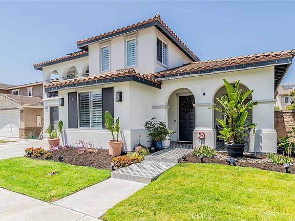 This meticulously maintained two-story residence, built in 2004, spans 3,343 square feet and features five bedrooms, three bathrooms, and a three-car tandem garage. Recent updates to the exterior and interior paint enhance its charm. The ground level welcomes you with a living room boasting cathedral ceilings and abundant natural light. It includes a bedroom and bathroom with waterproof laminate flooring. The formal dining room, adorned with built-in cabinets and a buffet, opens to a courtyard with built-in seating, perfect for gatherings. The family room features porcelain tile flooring and a cozy fireplace. The recently remodeled gourmet kitchen is a chef’s dream, with porcelain tile flooring, a quartz countertop island, and a double oven. It includes self-closing cabinets, newer stainless steel appliances, a bar counter, a beverage fridge, and a separate laundry room with a sink and quartz countertops with a waterfall edge. The expansive backyard is a private oasis with fruit trees, a fire pit, and block walls connecting to the courtyard. Upstairs, a tech loft with custom-built linen cabinets and a spacious master suite await. The master suite has waterproof laminate flooring, a remodeled bathroom with walk-in closets, dual vanities with marble countertops, decorative tile flooring, a jacuzzi tub, and a separate shower. The remaining (upstairs) three bedrooms have waterproof laminate flooring, with one offering balcony access. The children's bathroom includes double sinks and tile flooring. Enhancements include an upgraded staircase, plantation shutters, extra large crown and base molding, designer lights, and recessed lighting. Energy-efficient features include paid-off solar panels, new A/C, a whole-house fan system, a water softener system, and a newer water heater. Located in the prestigious Etiwanda school district, this turnkey home just blocks from the Victoria Gardens mall which offers cultural events, library, concerts, kid’s programs, entertainment, restaurants, and shopping. There are additional shopping centers, grocery stores and Arbor Park all within walking distance. With convenient access to the 210 and 15 Freeways. There is no homeowners association (HOA), making it an exceptional opportunity for discerning buyers seeking a move-in-ready home.