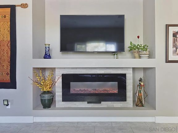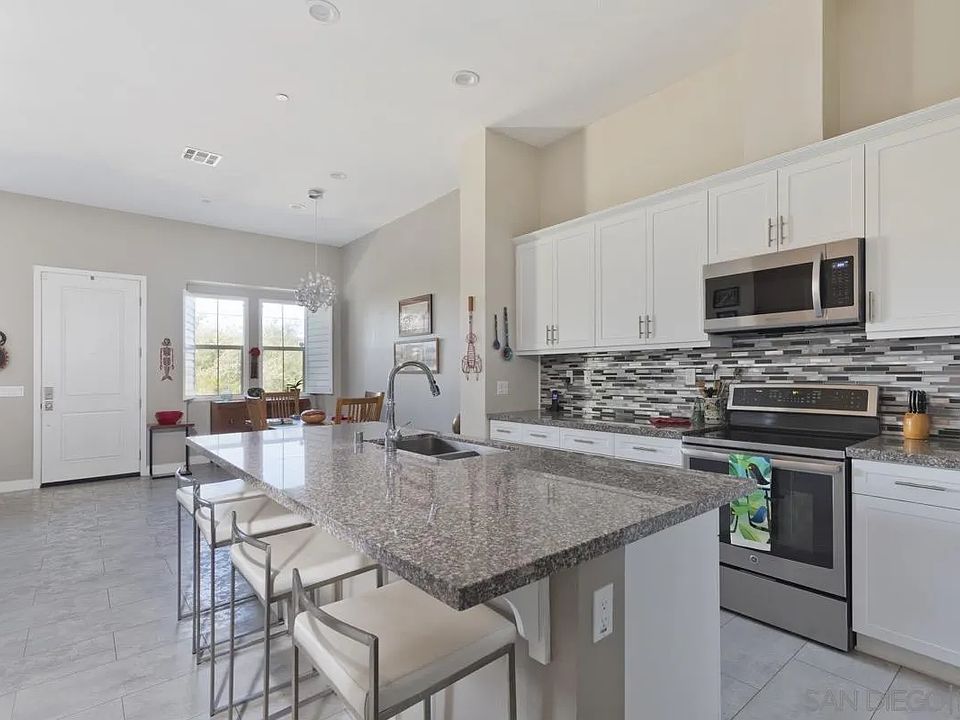 Unique opportunity to own one of the best units facing out to Mission Trails Park in the desirable Mission Trails Townhomes Community in West Santee. Enjoy mornings and lazy afternoons on the spacious front patio with panoramic views. Amazing open concept living with eleven-foot ceilings on first floor has it all, a generous living and dining space with an entertainer’s dream kitchen that features a huge island, upgraded induction range and huge pantry. Three bedrooms with optional fourth room/den/loft including a large bedroom and a third full bath on the first level. Upstairs you will find a unique primary bedroom with ensuite bathroom and huge walk-in closet with upgraded custom built-in cabinets. Upstairs you will also find a roomy third bedroom, loft, laundry room and third bath. Many upgrades including beautiful, easy to care for laminate floors and electric fireplace for those cold nights. Storage galore throughout the unit including storage shelving in garage. Low HOA fees and low utilities with owned solar.