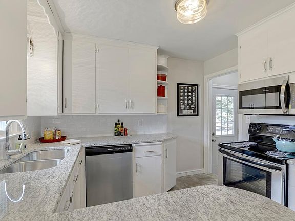 Spacious updated home in super convenient location. Updated kitchen with new stainless appliances, granite counter tops, flooring, lighting and fixtures. Updated main bath. Hardwood floors on main. Stone surround fireplace. Huge family room with fireplace on lower level plus 4th bedroom and full bath. 1-car garage is oversized plus 2 separate parking spaces on driveway. Breezeway/mudroom. Park-like backyard with privacy fence. Patio.