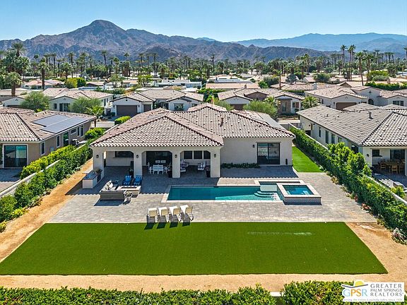 Welcome to The Province, Indian Wells' premier newest luxury gated community. Experience modern desert living at its finest in this newly built contemporary masterpiece that perfectly blends sophistication, comfort, and smart design. Set within the exclusive enclave of The Province, and situated on one of the LARGEST LOTS in the community at 13,068 Sq. ft., this stunning residence offers seamless indoor-outdoor living with an open-concept layout, refined finishes, and resort-style amenities. Inside, the expansive great room connects effortlessly to the dining area and chef's kitchen, creating an inviting space for entertaining or everyday living. The gourmet kitchen is equipped with top-of-the-line stainless steel appliances, including a Sub-Zero refrigerator and WOLF 6-burner range with double ovens, complemented by sleek European-style cabinetry and a striking Quartz waterfall countertop island. Use the convenient pass through kitchen windows for easy indoor -outdoor entertaining. Every detail has been thoughtfully considered, from the soaring ceilings, fireplace and custom plantation shutters. Property is highly upgraded, including ceramic tile floors throughout that look like wood. The home features three spacious bedrooms, each with its own private en-suite bathroom, and a custom-designed 9-foot primary closet with built-in organization. Beautiful tile flooring extends throughout for ultimate comfort and convenience. Step outside to your own private desert retreat. The backyard has been designed for effortless entertaining, featuring over 2,000 square feet of premium turf, a built-in BBQ island with rotisserie and infrared warmers, and custom landscape lighting. The spacious rear yard with room to add an ADU. The sparkling saltwater pool with tanning shelf and spa, fully controlled via smartphone or Wi-Fi make it easy to relax or entertain in style. Smart and sustainable living is at the heart of this home, with an owned solar system to provide energy efficiency and savings, tankless water heater, leak detection with automatic shut-off technology. A full fire sprinkler system adds peace of mind. Ideally located just moments from world-class golf, spas, and fine dining, and minutes from famed El Paseo the "Rodeo Drive" of the Desert this residence offers both luxury and lifestyle. As an Indian Wells resident, you'll also enjoy exclusive privileges including discounted golf and dining at the Hyatt Resort, plus complimentary access to the state-of-the-art Hyatt fitness center, shopping, entertainment and restaurants are all close by.