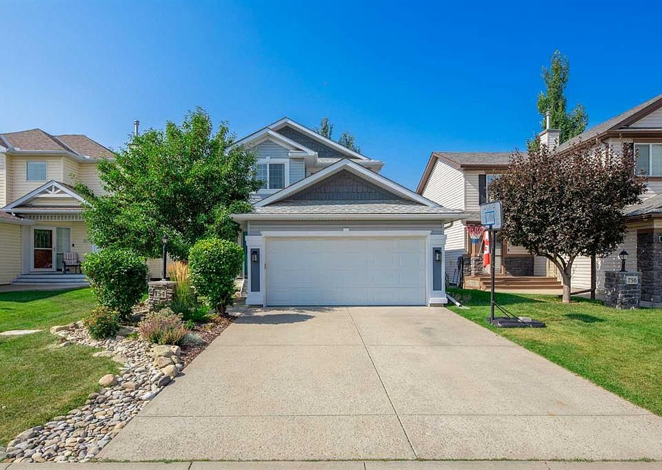 Welcome to this beautifully maintained 4 bedroom, 3.5 bathroom home, tucked away on a peaceful cul-de-sac in one of Okotoks' most desirable communities. From the moment you arrive, you'll be drawn in by the inviting front porch, perfect for your morning coffee or evening chats with neighbours. The bright and airy open-concept main floor is filled with natural light and features a freshly painted feature wall, cozy fireplace, and a spacious layout that’s ideal for both everyday living and entertaining. The kitchen is equipped with stainless steel appliances and seamlessly flows into the dining and living areas. A conveniently located laundry room with a brand new washer completes the main level. Upstairs, you’ll find three generous bedrooms, including a primary suite with a relaxing soaker tub in the ensuite. Freshly cleaned carpets provide a clean, move-in-ready feel throughout. The fully developed basement adds even more functional living space with a large family room, a cozy office or den tucked behind a stylish barn door, and an additional bedroom. Outside you will find a private, fully fenced backyard, featuring a newly stained deck, patio area, and mature landscaping with established trees, including fruit trees and a garden. Additional highlights include a double attached garage with ample storage, nearby walking paths, a scenic pond, and open green spaces. You'll also love the close-knit feel of the neighbourhood, complete with annual block parties and a welcoming community spirit. This home offers the perfect blend of comfort, style, and location, all just minutes from schools, shopping, and amenities.