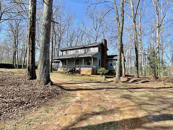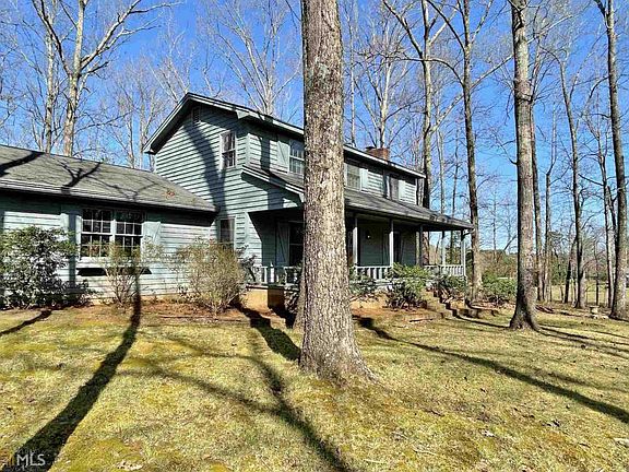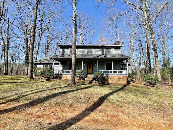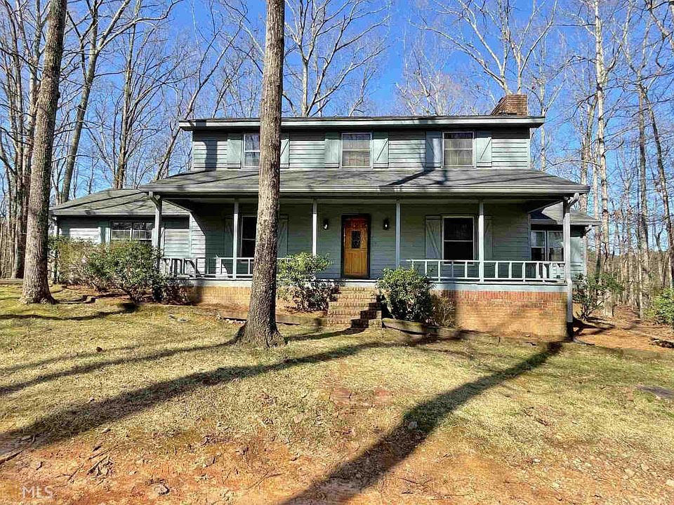 Great family farmhouse home full of character with welcoming rocking chair front porch in Tyrone, sitting on 2+- acres with tons of privacy. Foyer entrance with hardwoods which are throughout home except for kitchen and baths. Large family room complete with brick fireplace with wood burning stove and recessed lighting, open to spacious dining room with natural light. French doors lead to bright sunroom with bay window and hardwood floors. Country kitchen boasts of solid surface counter tops and an abundance of cabinet space and tile floors. Full bath with tiled standup shower and tile floors attached to guestroom on the main! Upstairs you will find large master bedroom with walk-in closet and en-suite bath with tub/shower combo and tile floors. Secondary bedroom also adorns the upstairs with private bath complete with shower. Full unfinished basement with garage door, perfect space for a workshop! Inground pool with new liner. A great place for those family gatherings and tons of fun for the kidos! New HVAC October 2020, New Hot water heater, New attic fans January 2021. New pool liner February 2021.