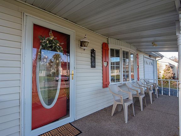 Patio sliding doorsCovered front porchFamily roomBay windowWood-burning stoveBuilt-in bookshelvesNewer kitchen cabinets