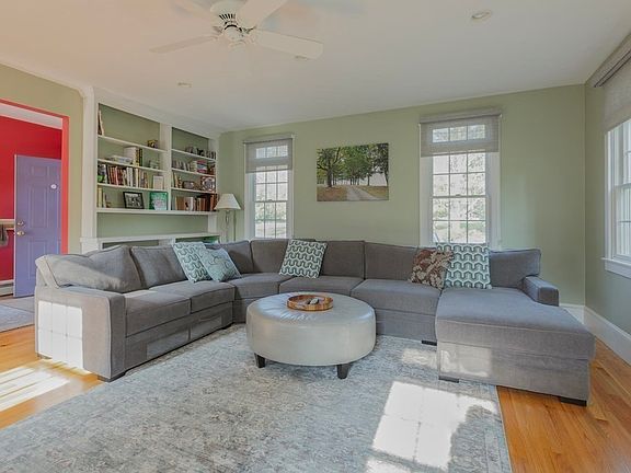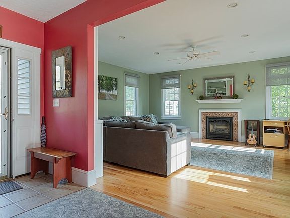 This striking mansard colonial has been much admired over the years by travelers on scenic Main Street. High ceilings bring an elegant feel as you enter the foyer and the huge family room with gas fireplace, modern kitchen with spacious dining area and additional living room to relax in. Gorgeous flooring runs throughout the home; new hardwoods just installed on the 2nd floor and refinished on the 1st floor. Many updates, including a large addition in 2002, which almost doubled the size of the home & added a primary suite with a gas fireplace & beautiful attached bathroom. Both 2nd floor bathrooms were just renovated and the 1st floor 1/2 bath was renovated in recent years and includes a laundry area. Step out the back door to a spacious composite deck and large yard which includes a fire pit, pergola seating area and a recently installed Reeds Ferry Shed. Tons of privacy and room to entertain! There is ample off-street parking with a turnout for easy exit. Welcome Home!