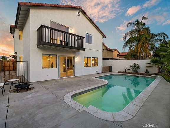 SELLER WILL ENTERTAIN CONCESSIONS FOR BUYERS TOWARDS CLOSING COSTS AND RATE BUY DOWN. FELL OUT OF ESCROW AT CLOSING, BUYER NO LONGER QUALIFIED - FHA APPRAISAL IN AT $570,000. Imagine owning a brand-new remodeled POOL home complete with mountain views on a cul-de-sac, that's one of a kind. This 3 bed, 3 bath property is one of a kind with brand new finishes throughout starting with new exterior paint, an extra wide driveway perfect for all your toys and potential RV or trailer parking. Real lush grass leads the way to the front door with gorgeous mountain views. Inside the home step into a breath-taking remodeled home with no expense spared and every detail meticulously throughout! As you enter you are greeted by crisp white paint, LVP floors, tall baseboards, new ceiling fans, recessed lighting, and blinds throughout. The family room offers surround sound, a brick tiled fireplace and is open to a flex space perfect for an office or sitting area featuring large windows allowing tons of natural light to flood the home. Through a large eating nook that peers out to the private oasis via a sliding glass door is the gorgeous modern kitchen. The brand-new kitchen is appointed with quartz counters, eat-up bar, subway tile backsplash, white cabinets and black finishes, new stainless-steel appliances, a black deep basin sink, custom chandeliers and pendant lighting, and a butler’s pantry area or flex space perfect for the imagination to get lost! Off the kitchen is access to the 2-car garage where the washer and dryer hook ups are and down the hall is a remodeled half bath offering a single vanity, modern finish mirror, gorgeous lighting and even a new toilet! The second story features new plush carpet, two large secondary bedrooms with brand new closet doors, a secondary bath boasting a single vanity, updated mirror and lighting and tub shower combo and new toilet. The primary suite offers a flex space perfect for a desk or built-ins, a balcony with mountain views and perfect to watch the sun set and an upgraded bath complete with new quartz counters, white cabinets, custom medicine cabinet mirrors, a tub shower combo and large walk-in closet. The private oasis boasts a crystal blue pool, concrete for entertaining, new back fence, shed for storage, large side yard or dog run, gorgeous greenery and fire-pit for those cozy summer nights! Enjoy being nestled in the mountain side, just minutes from the 215 freeway, sports parks, and tons of shopping and restaurants.