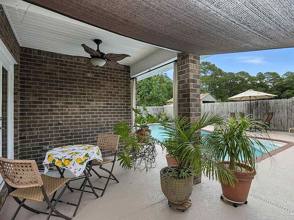 OPEN HOUSE Sat. October 11, from 11am - 1pm. Beautiful Pool Home in Airway Oaks. This full-brick home blends timeless charm with modern updates. Inside, the heart of the home -freshly painted cabinets, under-cabinet lighting & new pulls. Stone countertop in the kitchen is black pearl granite complimented by a modern tile backsplash. Upgraded recessed lighting, unique lighted wall sconces, and luminescent fixtures all new. The kitchen has a new gas line (2022), gas stove, microwave, refrigerator, and dishwasher—all new. Fresh paint throughout, new window treatments, & stunning professional mural wallpapers add personality. The main suite offers plush new carpet & padding, a large walk-in closet with ample storage. En-suite bath includes travertine tile, double vanities, garden tub, glass block window and separate shower. Remodeled guest bath has a pedestal sink, cabinet & shower/tub combo. Open Concept floor--plan hosts warm wood flooring, travertine tile and a high vaulted ceiling. Cozy up on those chili evenings to a wood-burning fireplace which also enhances the room. Step outside New French doors to your private—sparkling saltwater pool w/ a new liner (2023) includes heater ( swim year round ), newly rebuilt pump, replaced valves, and underground water lines that tie into whole house gutters. Covered patio & newly painted pool deck overlooks lush, next-level gardens, and the pool furniture (2021, Pensacola Pools) is negotiable. So much time invested here to make it move in ready. Highlights: new roof (2021), new HVAC (2023), new fiberglass front door with glass design, storm door, garage updates w/ brick accents, new panel w/ windows, modern house numbers, & new fence gates with metal frames. Precision in the landscaped yard with grass “like a rug”. This home is a true turnkey retreat—just unpack and start enjoying your Florida lifestyle maintenance free! Favored tree in this gorgeous landscape is the Tamukeyama Japanese Maple. Super convenient location, too!