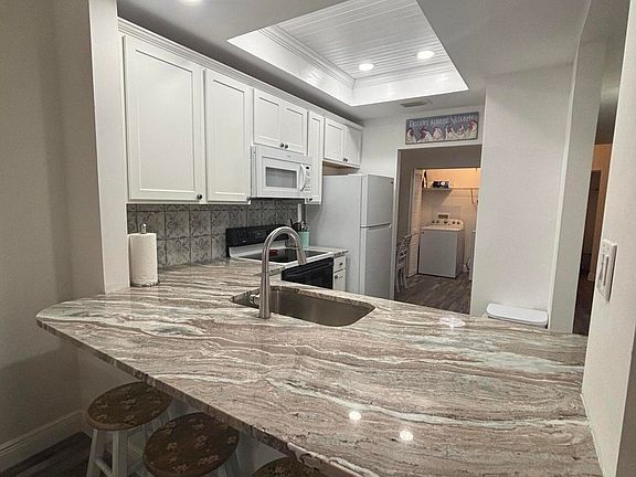 Welcome to the neighborhood!! 7 blocks south of Downtown Cocoa Beach!! This beautiful fully furnished remodeled condo is freshly painted with new flooring, remodeled Kitchen and bathrooms. This condo is decorated with all new furnishings! The enclosed patio with newer windows allows for more living square footage under air. Amenities include a beautiful pool, hot tub and sauna! Just steps to the ocean and 2 blocks to the community center, pickle ball courts, boat ramp, dock, park, and tennis courts,