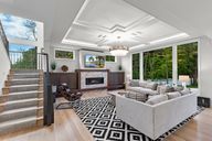 Cozy fireplaceSpacious media roomCambria kitchen islandHeated floorsCustom-designed furnitureExpanded rear deckCathedral ceilings