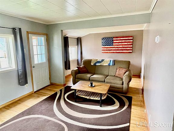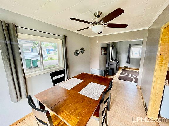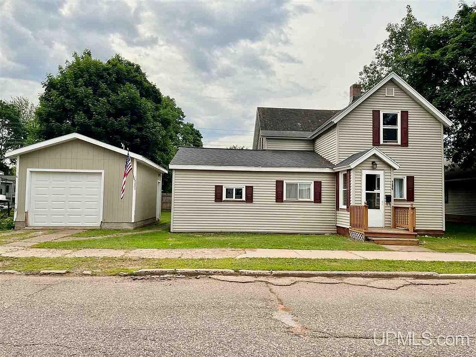 Back on the market just after it appraised at $135,000. This charming 2 bedroom 2 bath home is conveniently located in Ishpeming and has plenty of possibilities. The main floor features a large living room, dining room with French doors leading outside to the private backyard, a kitchen that has tons of prep space and a pantry area for added storage. The three quarter bath is complete with laundry area and an adjacent unfinished bonus room that is currently used as a workshop. Upstairs you will discover the 2 bedrooms with refinished wood floors. The main bathroom has started to be updated with new tub, vanity, flooring and ready for the new owner to pick out tile to fit their style. Upstairs hallway has 2 additional closets for storage. Outside you will enjoy with the grassy backyard with privacy fence and a fire pit. Two storage sheds included with the property along with the one car garage. The electrical service was upgraded this month!