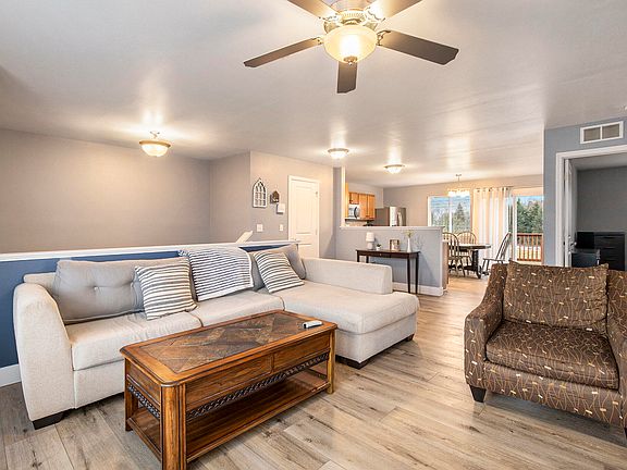 Inside, the main floor features an open-concept kitchen with stainless steel appliances and direct access to a large deck, perfect for entertaining. The spacious living room flows into a generous office, which could easily be converted into a 4th bedroom. The primary suite and a full bathroom complete the main level, which boasts newer LVP flooring throughout.