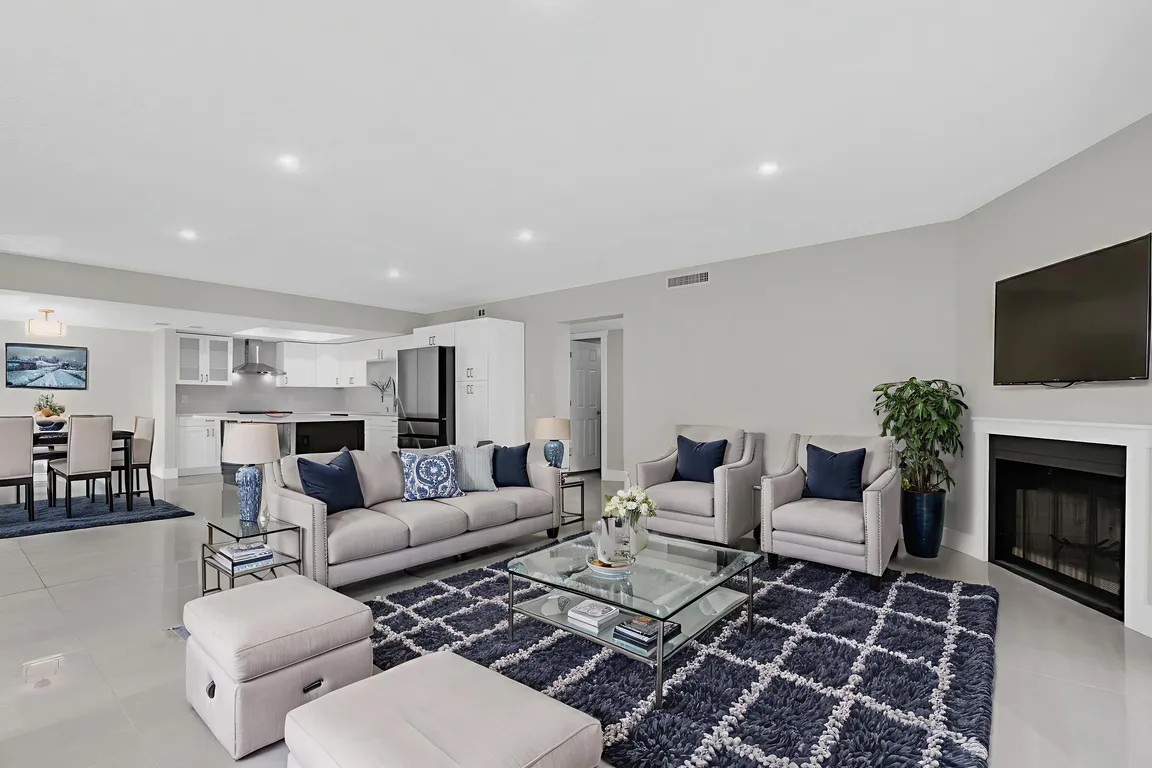 Waterfront poolStylish upgradesFour private patiosFresh paintGround-floor corner unitPanoramic water viewsQuartz countertops