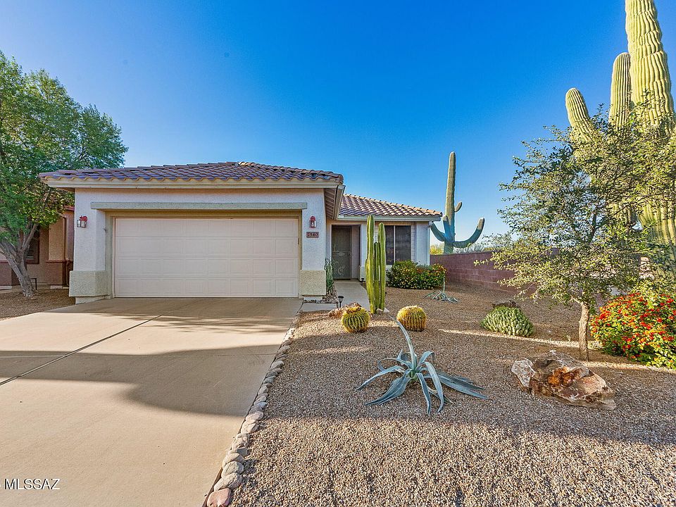 This thoughtfully designed 2-bed, 2-bath single-family gem is nestled within Sunflower at Continental Ranch--a premier active adult community just minutes from Tucson's vibrant Northwest side. With 1,296 square feet of comfortable living space, it offers the best of both privacy and community. Step into a light-filled interior where the Great Room flows effortlessly into a well-appointed kitchen featuring stainless steel appliances, ceramic tile counters, and a sunny breakfast nook. The split-bedroom floor plan provides comfort and convenience, ideal for hosting guests or enjoying quiet evenings at home. Outside, the corner lot offers beautifully maintained desert landscaping highlighted by iconic saguaros--an authentic touch of Tucson. split-bedroom floor plan provides comfort and convenience, ideal for hosting guests or enjoying quiet evenings at home. Outside, the corner lot offers beautifully maintained desert landscaping highlighted by iconic saguarosan authentic touch of Tucson.