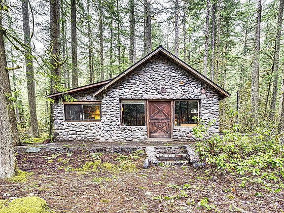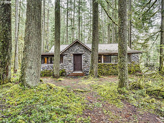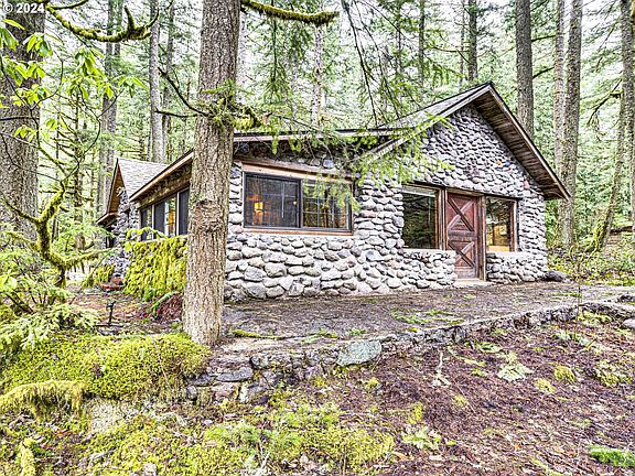 Nestled in the trees of Mt Hood, this 2-bedroom + loft, 1.5-bathroom Forest Service cabin sits along the Zig Zag River. located only 8 miles from Government Camp, 14 miles from Timberline Lodge & Ski Resort and less than an hour from PDX Airport. The lower exterior half of the cabin and wrapping all around is made of river rock to welcome the mountain vibe as you pull up, while the knotty pine walls, tongue 'n groove vaulted ceiling with open beams, and large open fireplace with hearth and mantle inside bring complete the experience. The generously sized kitchen with lots of cabinets opens to the dining area and family room. Multiple seating spaces to enjoy gatherings and an oversized Dutch door opening to the Zig Zag River. There is a deck off of the kitchen with picnic table for ease of outdoor cooking and dining. Hard to find, level space once you descend off Road 27 into the property allowing plenty of room for multiple car parking. The ornamental well feature gives an added charm. Composition roof installed in 2023. No STRs allowed.