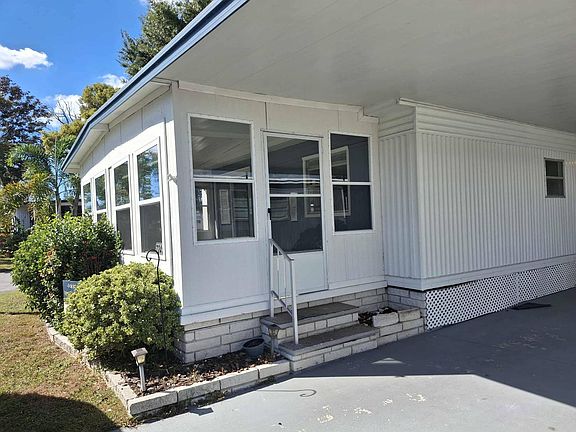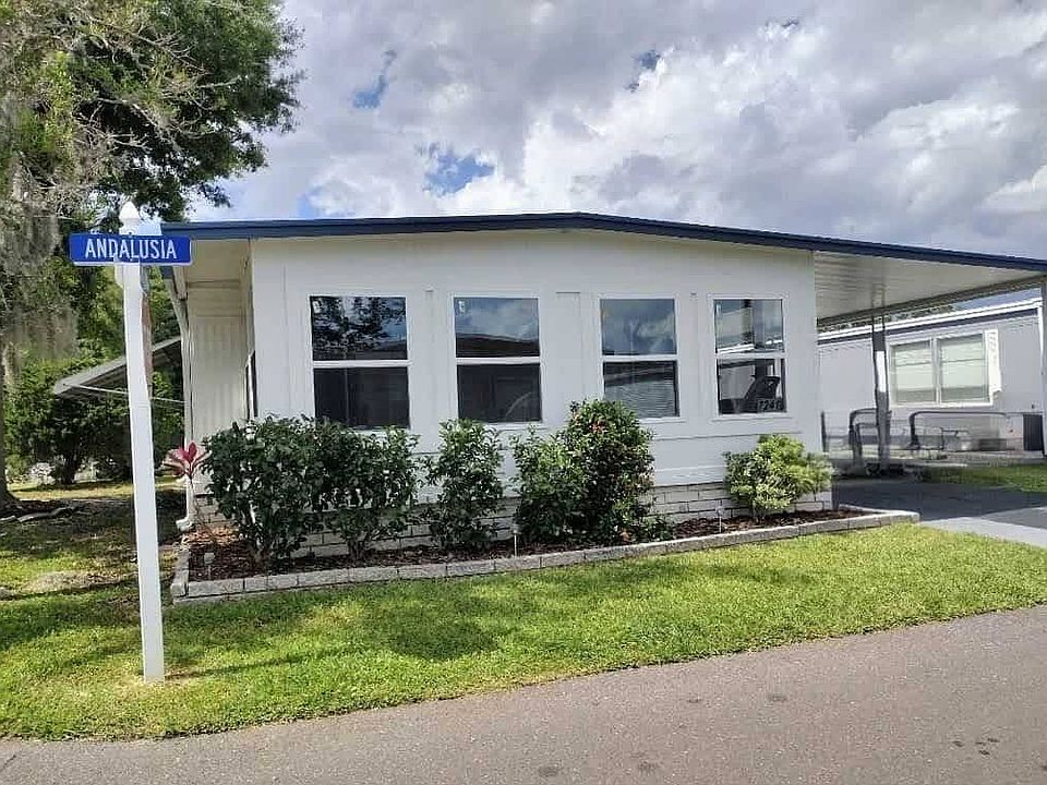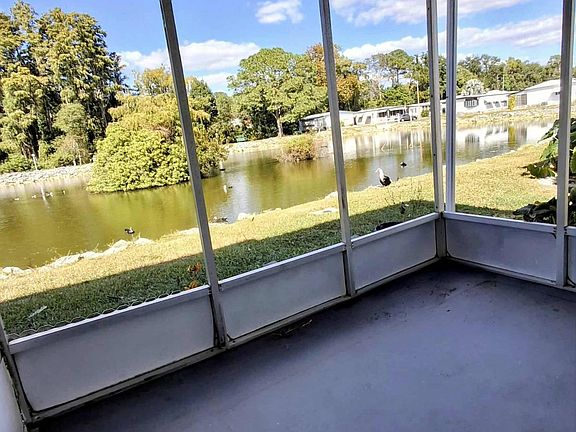 If comfort and space is what you seek, look no further! This Large 2 bedroom and 2 full bathroom home sits on a corner lot over looking the lake. The front Florida room finished with thermal Payne windows and custom porcelain tile adds as a diverse space. Step inside to a large new kitchen complete with newer appliance, two pantries and beautiful backsplash. The spare bedroom offers a large closet and the large Master bedroom has a walk in closets. Both bathrooms are updated with new tiled shower and tub. Subfloors done with plywood and covered with Vinyl Laminate. The HW tank and plumbing are new 2 years ago. The AC unit is new 2025. Enjoy in peace of mind knowing so much has been done so you can relax and enjoy the comforts of home and the amenities of the park. Hacienda Village is a gated 55+ community with heated pool, clubhouse, fitness center and more! Lot rent of approximately $980 per month will include the water, sewer, trash removal, lawn care and property taxes. Don't sweat the hard stuff, we got that taken care of for you. Call me to view.
