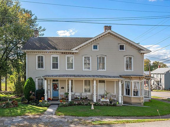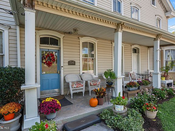 7541 Middleburg Rd is a once in a lifetime opportunity to own a large Victorian that maintains all of its original charm while providing you with the desired updates of today and commercial zoning opportunities. Previously a hotel, this expansive 4BR/3BA home has all of the bespoke features you could want, from the grand central staircase, high ceilings, tall original windows, custom molding and trim, combined with modern amenities like central air conditioning, an updated kitchen, and 3 full baths. The front porch leads you to the large foyer, immediately surrounding you with thoughts of yesteryear and the grandeur this residence has preserved. The large dining room features an elegant bow bay window, plenty of room for large table space and perfect for entertaining. It shares a dual entrance to the back staircase with the kitchen, which features a cozy pellet stove, center island, updated cabinetry and butcher block counter tops, stainless appliances, and table space, perfect for eat in casual dining. Off the kitchen is access to the first floor laundry room, and butler's pantry/wet bar access perfect for additional storage and making entertaining a breeze. Through the butler's pantry is a perfect office space with access to the updated, first floor full bath with walk-in shower. Off the office brings you back to the front of the home into the formal living room/sitting room with propane fireplace and lots of windows overlooking the front porch and access to the foyer. Upstairs, the landing wraps the whole way around the staircase with a beautiful banister, to a small sitting area or reading nook at the front of the home. Two large bedrooms with high ceilings and beautiful original woodwork flank one side of the hallway, and a full bath with shower/tub combo and large walk-in closet with access to extra storage sits at the top of the stairs. The primary bedroom is accessible directly from the main hall, but also from its own hallway. With its own dedicated closet space, beautiful hardwood floors, and plentiful oversized windows, it is truly a beautiful, peaceful space. The back hallway also provides access to the large, walk up attic, and the secondary staircase down to the kitchen/dining rooms. There is an additional fourth bedroom and large bathroom with iconic claw foot tub. This entire side of the home could be blocked off to provide an expansive primary suite, and the fourth bedroom could be converted into an office, nursery, walk-in closet, sitting area... the options are endless. Outside, the flat lot provides shade from mature trees and a peaceful space for sitting outdoors. The porches on both sides of the home provide that small-town feel that you'd expect in Detour - just minutes from Keymar, Libertytown, and convenient to Frederick, Taneytown, and Littlestown. Set just steps from Big Pipe Creek, Double Pipe Creek Park, Prosperity Mansion and Farm, and other local attractions and venues, this special setting provides opportunity for a variety of home business or commercial uses as well. Buyer to verify all zoning and usage requirements with county, but this property is zoned Residential/Commercial! Let your dreams take shape with a wonderful nod to the past on Middleburg Rd.