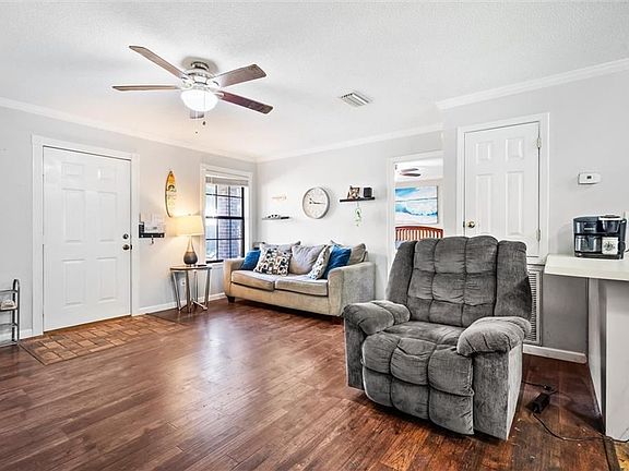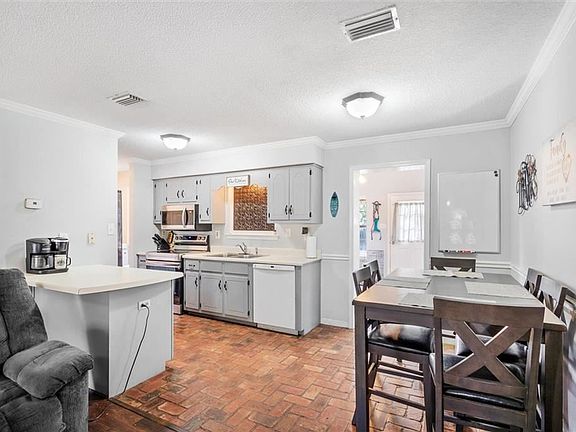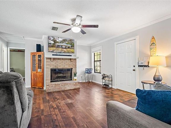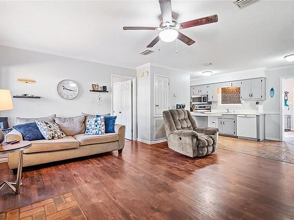 Nestled in the charming community of Semmes, this lovely 3 bed 2 bath home offers a comfortable and convenient lifestyle with its split floor plan. This residence sits on a spacious .45-acre lot, complete with a fenced yard ensuring privacy and security as you enjoy the beautiful 12x24 deck (constructed in 2020), perfect for outdoor gatherings and relaxation. The metal roof was installed in 2006 and adds character and longevity to the home. You'll also enjoy the two storage sheds in the back, with the larger one equipped with electricity, providing ample storage space, a possible workshop or "She Shed," or a play area for kids. Crown molding and ceiling fans can be found throughout the home. The kitchen is equipped with newer appliances, including a refrigerator, microwave, and oven. Washer and dryer do not convey with the property. All measurements are estimates. Buyers encouraged to confirm them independently. This well-maintained home is a delightful blend of functionality, style, and Southern comfort. Schedule your showing today!
