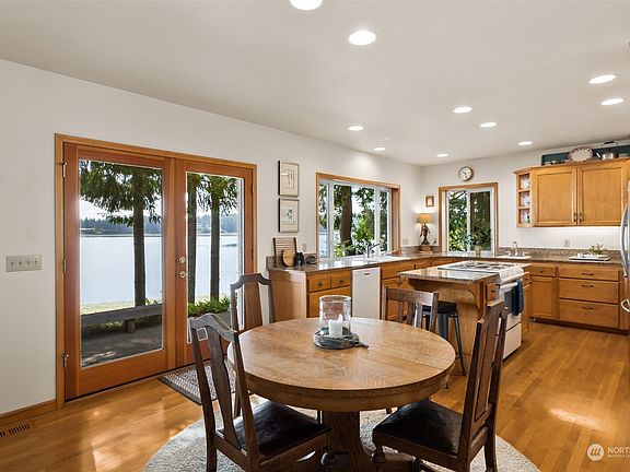 First time ever on market! Immaculate low-bank WATERFRONT home just steps to beach on shores of Eld Inlet! Gorgeous East-facing views of salt-water, sunrises over Mt Rainier & Black Hills from beautiful 2 bedroom PLUS den home of 2394 SF on 1.15/acre lot with 119' of frontage! Bright & light living spaces! What VIEWS! Spacious kitchen overlooking sparkling water. Separate dining & living room offering built-in bookshelves alongside gas fireplace & incredible views! Up 1/2 flight to lovely primary suite boasting walk-in closet & updated tile shower. Lower level guest suite. 2 car garage PLUS 30' x 30' heated SHOP and add'l covered RV Bay too! Griffin/Oly schools. Waterside deck, boat ramp,outdoor shower & serene outdoor areas! Very special!