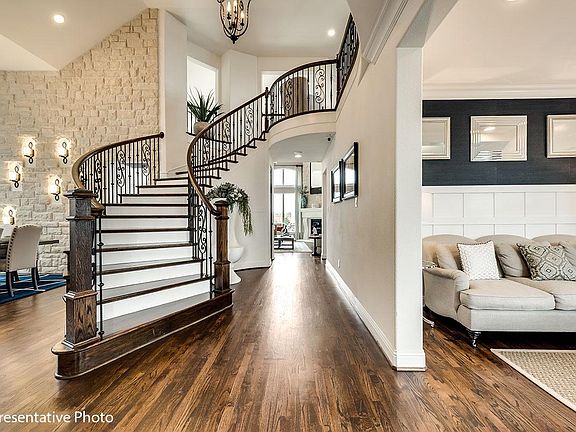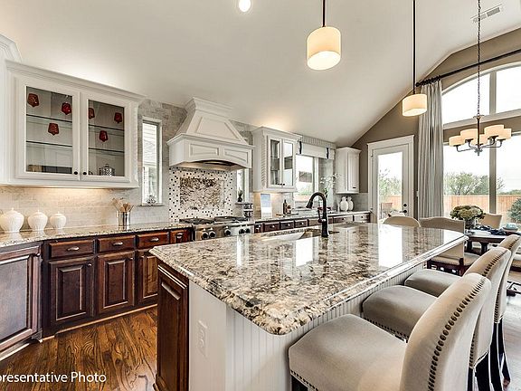 Stunning spacious home w 2 story Fireplace, full oak staircase has wrought iron balusters, nail down hardwood floors, 8 foot interior doors, vaulted family room has flat screen tv wiring, home office has French doors, upstairs gameroom, media room wired for 5.1 surround sound & large children's retreat. Kitchen features omegastone slab tops, Shaker cabinets, 5 burner gas cooktop, stainless steel appliances, trash can drawer & island. 2 story Formal Dining with Butler's Pantry. Downstairs guest suite. Master bath has free standing tub, separate vanities & rectangle sinks. Energy Star certified R38 & 16SEER. Mansfield ISD
