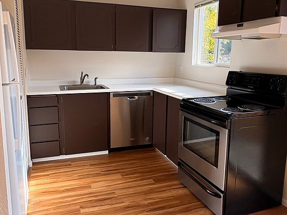 Private fenced patio areaElectric stoveNew carpetingVinyl laminate hardwood flooringStainless steel dishwasherWall heat