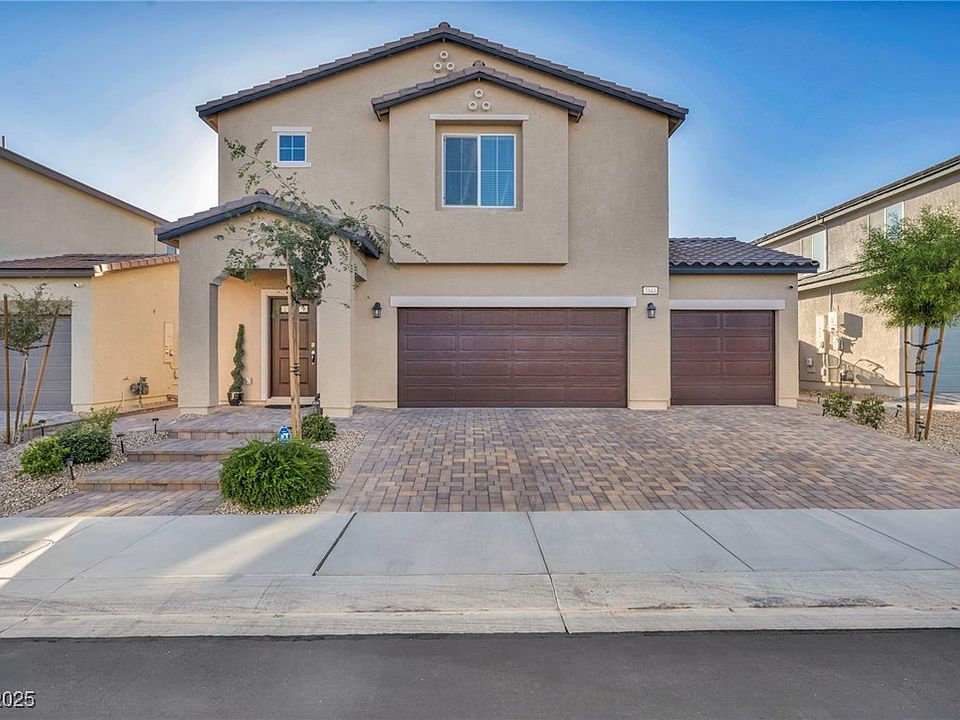 BETTER THAN NEW, one-of-a-kind! PRIME LOT backs up to walking path, no neighbors directly behind. Serene backyard, professionally landscaped with covered patio that runs the length of the house, low maintenance turf, and a huge area on side of house. GORGEOUS views of the mountains from the front & backyard! Thousands of pavers added to extended patio, walkways on each side of house, and a lighted step walkway to front door. OPEN Floorplan with 5 BEDROOMS + HUGE LOFT! 12x14 tile flooring only downstairs. Beautiful kitchen with stainless steel appliances, granite counters, white shaker cabinets & soft close drawers. Upgraded, pot lights added. Extra Shelving in huge laundry room. Smart Home Features, water filtration system, lighted ceiling fans and window blinds through out. Downstairs bedroom is next to 3/4 bathroom. Epoxy floors in 3 car garage. Highly desired, gated community of Heartland Falls in master planned Tule Springs, located close to shopping, freeways and so much more!