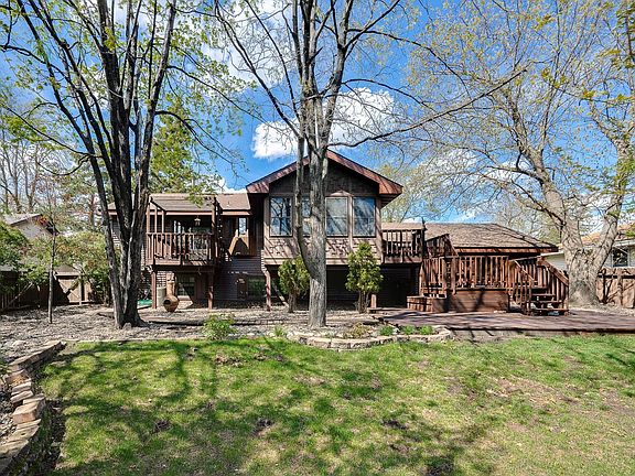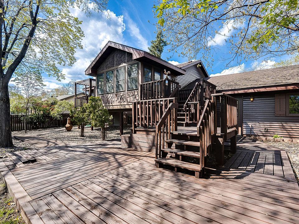 Nestled among mature crabapple, lilacs, and maples this charming and loved home in the heart of Fridley boasts a beautiful sunroom leading to multi-tiered decks and large patio with boardwalks thru your private fenced backyard. Great room sizes, new light fixtures, freshly painted and cleaned this house is ready you to move in. Oversized garage has lookout windows, workbench and storage shelves, plus room for all your toys. Extra parking on the concrete driveway. Owners bedroom has its own private south facing deck, a great place to take some time and relax in the morning with your coffee or tea. 4 bedrooms 2 baths on a quiet street just minutes to Bob's Produce, HyVee, Target, and Northtown shopping. This beauty won't last make your appointment to see it today!