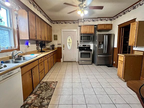 Charming Historic 2-Story Home with Character & Space Built in 1900, this spacious 4-bedroom, ( 1 bedroom non-conforming in basement) 3.5-bath home sits on nearly a half-acre and offers a wonderful blend of history and functionality. Enjoy touches of original woodwork, hardwood floors, 9'+ ceilings, and an enclosed porch with a propane line ready for heat. The first floor features a laundry area, a primary bedroom with bath, and inviting living spaces. The second floor, once used as a separate apartment, includes a kitchen, walk-in pantry, large full bath, dining and living rooms, and two bedrooms—plus exterior access for added flexibility. The finished basement offers even more living space with a bar, family room, non-conforming bedroom, full bath, and an exterior exit to the backyard. The PFA furnace is approximately 2 years old. Outside, enjoy a beautiful fenced yard with mature perennials, landscaping, and a charming playhouse/shed. The attached 2-car garage connects through an enclosed breezeway and includes an attached workshop. Quiet neighborhood, churches, schools, convenient grocery stores/ gas stations, post office, local garbage, all near by! This property has so much potential! Could this be a future income property for you or a home to bring back to it’s former glory! Home is being sold As-Is; seller will not be making repairs or upgrades.