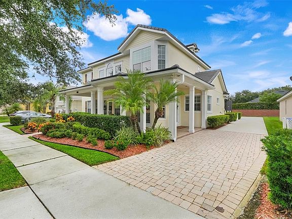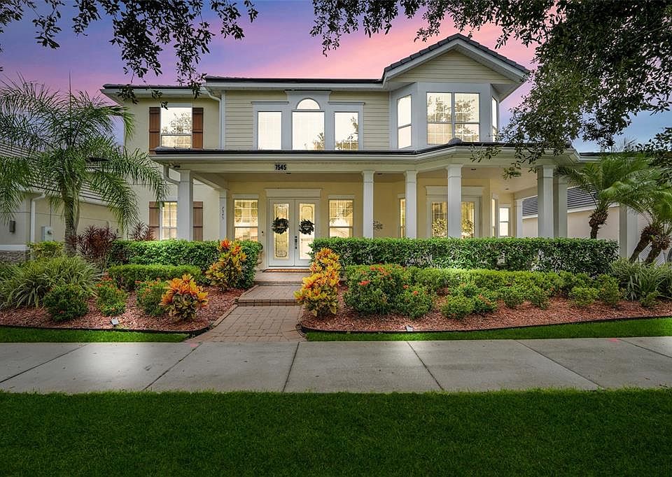 Welcome to 7545 Lake Albert Drive. Where timeless architecture meets modern luxury. Nestled on an expansive lot in one of Windermere's most sought after communities, this stunning estate offers the perfect balance of privacy, comfort, and resort-style living just minutes from Walt Disney World and the best of Central Florida. Arrive via a long, elegant driveway, framed by lush landscaping, leading to a spacious rear detached garage connected by a breezeway. This meticulously maintained estate features a NEW ROOF, ensuring both peace of mind and long-term value. Step inside and be greeted by an oversized foyer and soaring ceilings, filling the home with natural light throughout. A wooden staircase with wrought iron accents adds a touch of elegance, while the open layout seamlessly connects living, dining, and entertaining spaces. The gourmet gas kitchen is a chef's dream, featuring granite countertops, custom solid wood cabinetry with crown molding, a center island, and upgraded finishes. A convenient powder room on the main level ensures effortless entertaining. The primary suite, located on the first floor, is a private retreat with direct pool access. The spa-like primary bath includes a walk-in shower, soaking tub, and dual vanities. Upstairs, you'll find three additional bedrooms and two full bathrooms including a private en suite, plus a catwalk overlooking both living spaces below. Outdoor living is a true highlight with multiple covered spaces, including a front porch and screened in pool. The poolside exterior bathroom adds convenience for seamless indoor-outdoor living. The summer kitchen is perfect for entertaining with a built-in gas grill, sink, refrigerator, and storage, plus a breezeway patio and fire pit area. Permanent Govee lighting sets the mood for unforgettable evenings spent under the stars. The community features Lake Burden pier for fishing, beautifully maintained parks, playground, and tennis courts for active living and recreation. This home delivers the full Florida lifestyle whether you're hosting poolside gatherings, unwinding in the private backyard, enjoying community amenities at Lake Burden and the tennis courts, exploring Windermere's lakes and boutique shops, or experiencing world-class attractions like Walt Disney World just minutes away.