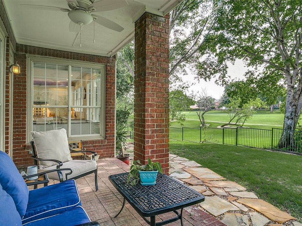 Situated on the picturesque 7th fairway of the exclusive gated golf course community of Hackberry Creek, this remarkable home offers a grand entrance adorned with magnificent soaring ceilings that lead to exquisite hardwood flooring throughout. Recently renovated to incorporate modern conveniences, this pristine residence showcases breathtaking views of the golf course. The home features an open floor plan, wood floors, designer and recessed lighting, while the kitchen is equipped with granite countertops, beautiful marble backsplash, stainless steel appliances and a window by the sink. Adjacent to the kitchen is family room complete with gorgeous fireplace and French door leading to the covered back patio. Additionally, both formals and a guest bedroom with a Murphy bed are on the main level, making this a perfect floor plan. Upstairs is the master suite and its accompanying bath, this is the epitome of luxury, offering an unparalleled level of comfort, space and cavernous closet As a bonus, enjoy morning coffee on the balcony off the master suite that looks over the golf course. The second floor game room with French doors is flexible for a myriad of uses, think quiet game or play room, over flow for guest room, exercise room, third living room, the options go on. The backyard is a perfect retreat, offering a delightful patio setting nestled on a treed lot boasting sweeping views of the lush golf course. Hackberry Creek is eligible to apply for Coppell ISD Open Enrollment Program, please see the virtual tour link for more information.