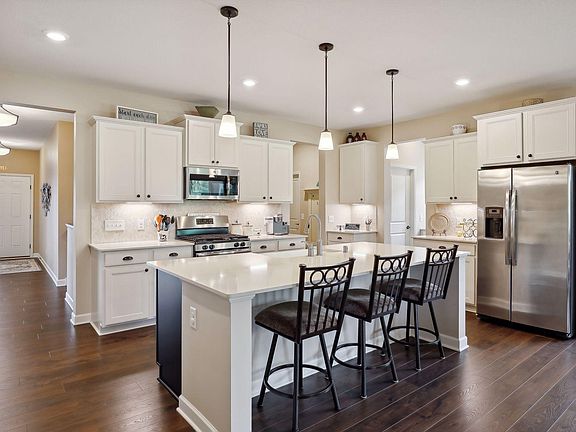 Stunning one-level living in highly sought after Four Seasons of Rush Creek. 3 car garage in 55+, active community is hard to find! Better than new, loaded with upgrades. Spacious, all ML living w/ fully finished bsmt for entertaining and hosting guests. Corner lot w/ privacy. Screened porch is perfect for morning coffee or reading a book. Standout curb appeal w/ stone accents and front porch. Gorgeous hwd floors. Modern kitchen w/oversized island, tiled backsplash, farmhouse sink and SS applcs. Abundance of windows, high ceilings make this home light and bright. Cozy ML fireplace. Informal dining w/pantry area and ML laundry. Primary bath w/double sinks and walk-in tiled shower. Neutral carpeting and flooring. Stay active, meet friends in this fabulous neighborhood offering clubhouse amenities including indoor & outdoor pools, fireplace patio, spa, fitness center, pickle and bocce ball courts, billiard/ card rooms, party room w/ kitchen, exercise room and so much more!!