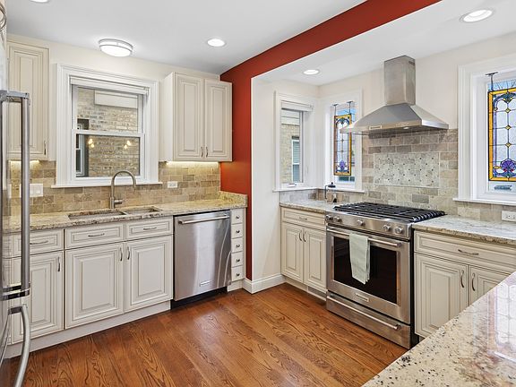 CHECK OUT this completely renovated 3 Bedroom, 2 Bath Georgian home in vibrant Edison Park & across from Olympia Park! Completely gut-rehabbed in 2017, this home offers loads of space inside and out- with beautiful hardwood floors throughout among other architectural details. The inviting Living Room features a huge bay window and opens to a spacious Dining Room. The new Kitchen features granite counters, custom cabinets and stainless-steel appliances- all overlooking the beautiful backyard and is sure to be the spot everyone gathers! Three large bedrooms and a beautifully designed bathroom completes the 2nd floor. The basement boasts a large Recreation Room (14 x 22), Office, Laundry and a full Bathroom. The large deck off the Dining Room is perfect for entertaining and walks down to a patio and large fully fenced backyard. NEW windows, electric, plumbing & HVAC; gutters & downspouts, dug down Basement with French drain tiles (2017) and 2-car detached Garage & slab (2023). Close to all Edison Park offers and minutes to the Metra train. Don't miss this special home- nothing to do but move in and enjoy!