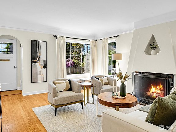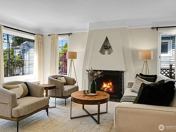 Ravenna. You’ll fall in love with this convenient location and this ravishing 1929 Tudor! (And don't let the map fool you; there is very little traffic noise). This pretty 4 bed, 3 bath is not your average Tudor. The large, leaded windows offer tons of natural light. And the spacious kitchen and baths are updated with contemporary fixtures and stainless appliances. You’ll enjoy evenings by a charming fireplace in the open living/dining area. And the cheerful kitchen connects to an outdoor patio. The primary bedroom is sky-lit with views of the private garden. Located on a quiet street with an alley & attached garage. Excellent Walkscore. Blocks from Roosevelt Light Rail, (w/ a Bellevue connection expected in 2026). See this one in person!