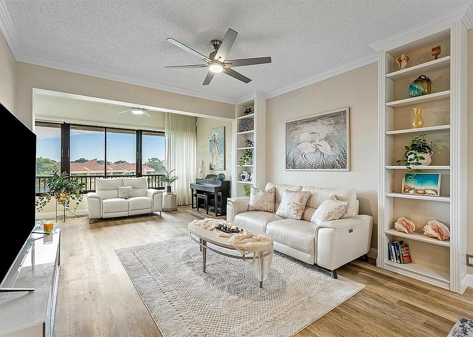 The perfect blend of prestige, elegance, and comfort in this magnificent Florida paradise, an immaculate, rare modern condo with two bedrooms and two bathrooms, featuring (9ft) ceilings with the most impressive lake and golf course views. This condo has been updated with a gorgeous kitchen, new floors, window treatments, and additional storage, all conveniently located near the elevator. La Paz features two pools, a tennis court, pickleball, assigned parking spaces, and ample guest parking. Seasonal or yearly furnished or unfurnished. This peaceful resort living style property will make you feel like a dream.