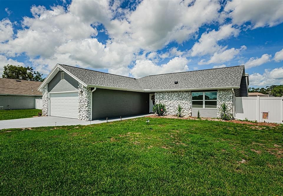 This beautifully updated 2-bedroom, 2-bath home offers 1,374 square feet of heated living space in a quiet, well-maintained neighborhood. Featuring a split floor plan and open concept layout, the home is perfect for both relaxing and entertaining. Everything has been updated. New roof, flooring, kitchen cabinets in 2024.The home also offers updated interior and exterior doors and new windows. Step outside to your private retreat with a heated saltwater pool in a screened-in enclosure, surrounded by updated landscaping that includes palm trees on each side of the pool. The expansive backyard is fully fenced with new vinyl fencing, offers a sprinkler system, and has ample space for a boat, RV, or recreational toys. A backyard shed provides additional storage. Inside, the spacious kitchen boasts stainless steel appliances, recessed lighting, plenty of cabinet space, a new silent dishwasher, heavy-duty garbage disposal and filtered water with a new softener system. The primary suite includes a custom walk-in closet and an en-suite bath with new walk-in shower tile and a generous bathroom closet. One of the secondary bedrooms features custom closet shelving. . This move-in ready property combines thoughtful upgrades with comfort and style, all in a desirable neighborhood you’ll love to call home. Sinkhole remediation was completed in 2012. Spring Hill offers a variety of activities for residents and visitors alike. Nature enthusiasts can explore the Weeki Wachee Springs State Park, known for its crystal-clear waters and live mermaid shows. For those seeking outdoor adventures, canoeing or kayaking down the Weeki Wachee River is a must. Golfers can enjoy several scenic courses, while families can visit the Wildlife Survival Sanctuary or take a trip to the beach at Pine Island. With its mix of natural beauty and recreational opportunities, Spring Hill promises something enjoyable for everyone. Don't miss out on your opportunity to own this beautiful updated home.