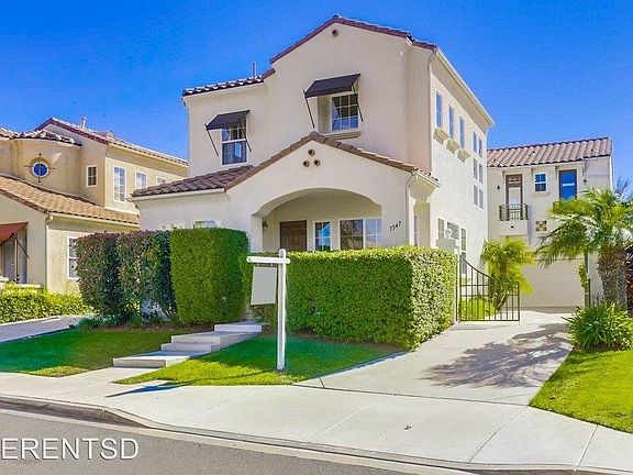 4 bed 2.5 bath on CANYON LOT in desirable Torrey Del Mar! Open & bright floorplan features high ceilings, abundance of windows & natural light, spacious kitchen w/ plenty of cabinet & counter space, neutral color palette, 1st floor optional bedroom, palatial master retreat with oversized master bath offering separate tub/shower, large walk-in closet & 2 balconies, secondary bedrooms with jack & jill bath, laundry room & 2 car garage. Easy care yard with paver patio & canyon views! This is a must see!