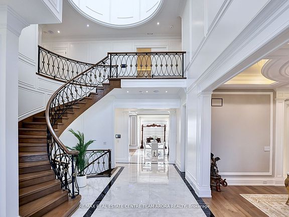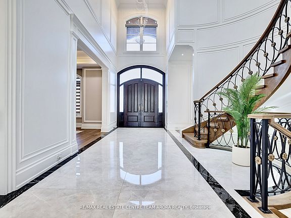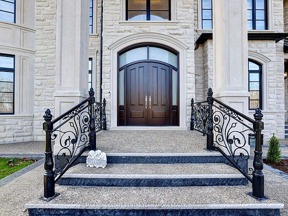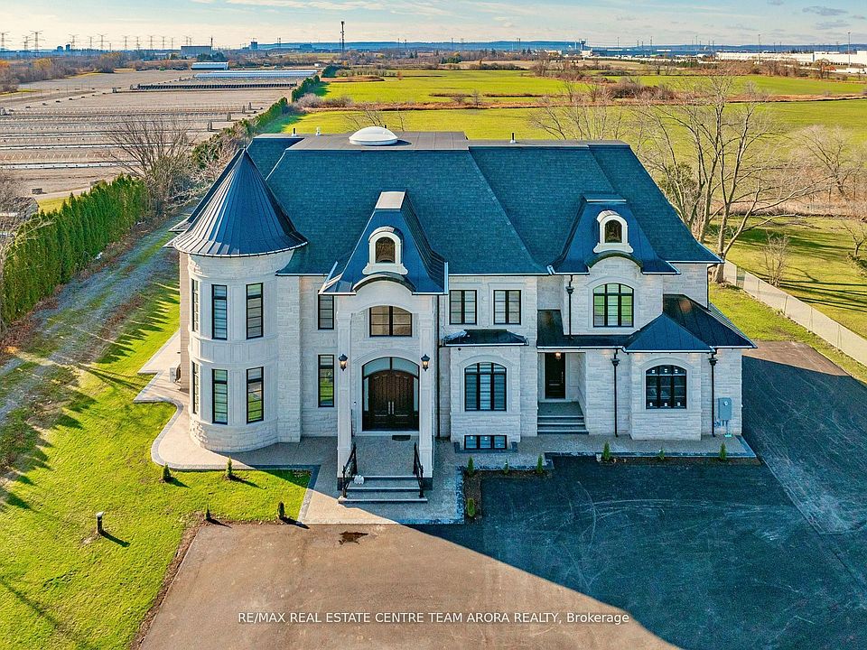 Welcome to this beautiful custom-built home sitting on a 132 ft x 250 ft lot in peaceful countryside, Milton. As you walk in, you're greeted by a stunning 37-ft high domed ceiling, giving a grand and open feeling right from the start. The home features 11-ft ceilings on the main floor, 10-ft on the second, and 9-ft in the basement. Enjoy elegant crown molding, paneled walls, and hardwood flooring throughout. The modern kitchen comes with JennAir appliances, a unique Titanium Leather-finish countertop, a spice kitchen, and a walk-in pantry perfect for cooking and entertaining. Relax in the cozy family room with a gas fireplace, or host in the formal living and dining rooms. There's also a bright breakfast area with a walkout to the backyard, and a study room ideal for working from home. A main-floor bedroom with its own ensuite makes this home great for large or multigenerational families. Upstairs, the master bedroom includes a private balcony, a large walk-in closet, and a luxury 5-piece ensuite. Every other bedroom also has its own private bathroom for added comfort. The finished basement offers a 2-bedroom unit with a modern kitchen, a home gym, cold storage, and a large rec area perfect for extended family or rental use. The home also includes a central water filtration system for clean water throughout. Located close to Milton GO Station, Highways 401 & 407, Toronto Premium Outlets, and top schools, this home offers space, style, and comfort in one of Milton's best locations