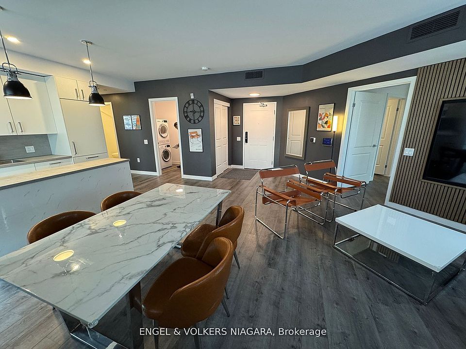 Amazing Opportunity- Priced to sell. Currently Tenanted- ready cash flow. 1 Locker and 1 underground parking included. Newly built 2-Bedroom, 2 Bathroom Condo Apartment for sale in Marbella Condominium in Niagara Falls. Discover upscale living in this beautifully 2-bedroom condo located in the sought-after Marbella Condominiums, just minutes from world-famous Niagara Falls. This spacious unit features an open-concept living and dining area, complemented by a modern kitchen with stylish backsplash, appliances, and a central island perfect for entertaining. The primary bedroom includes a luxurious 5-piece ensuite, walk-in closet, and walkout to a private balcony. A generously sized second bedroom, additional 4-piece bathroom, in-unit laundry with storage space, and a linen closet complete the layout. Residents enjoy access to premium amenities, including a party room, fully equipped gym (in process), elegant ground-floor lobby, and convenient elevators. Ideally located near grocery stores, restaurants, Cineplex, and with easy access to the QEW. Apartment photos taken before tenant occupancy. Tenants willing to stay, Call for more details. Contact us today to schedule your private viewing!
