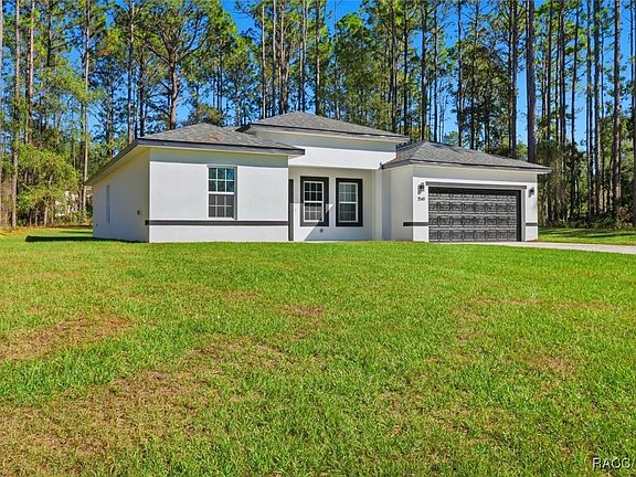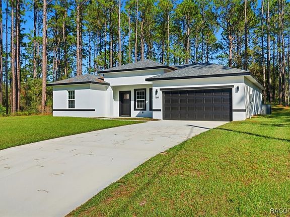 2025 built 4/2/2 modern home inside and out and located in a no flood zone and no HOA! Welcome to Citrus Springs where you are centrally located in the community. You will have Dunnellon to the north known for the famous Rainbow River. Travel west for Crystal River known for its natural springs and rivers that lead out to the Gulf. To the southeast is Hernando and Inverness with the chain of lakes. This home offers all of the upgrades that you would expect, from the granite countertops, shaker style wood cabinets, soft close drawers and doors, stainless steel appliances, drop lighting, recessed lighting, large tiles in the showers, black hardware on doors and cabinets and black faucets really make this beauty stand out! Inside laundry room is right off of the master which is brilliant! The other three bedrooms are on the other side for added privacy. Large 2 car garage as well as a lengthy back porch that is under roof. There is also enough room for a future pool. Make your appointment today!!