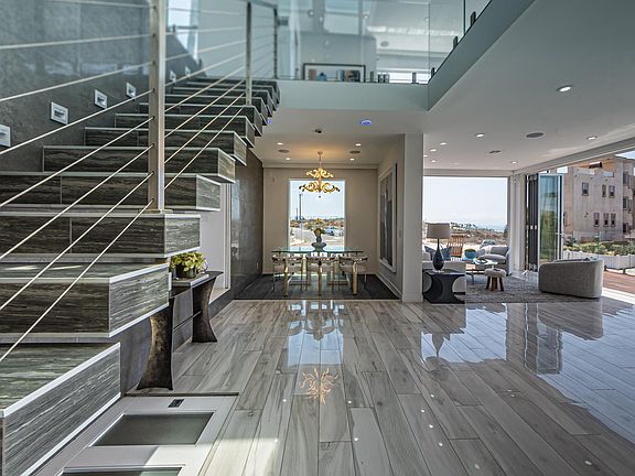 MODERN SEASIDE ESTATE, TWO BLOCKS FROM THE BEACH! Truly the "king of the hill," this architectural gem with a striking glass exterior features panoramic ocean views from Palos Verdes to Malibu. Freshly remodeled and recently upgraded, this home doesn't just have "wow factors," it IS a "wow factor." Dramatic floor to ceiling glass accordion doors and windows downstairs and upstairs provides the best indoor/outdoor living space in Playa Del Rey. You and your friends won't want to leave the backyard oasis with 3 pools, including a wading pool, a swimming pool, and one of the largest hot tubs on the Westside of LA (50 people seated), from which you can watch the sun sink into the ocean. Continue the entertaining on the roof-top deck complete with glass enclosures, views for miles, and plenty of space to relax, meditate, or gather. OVER 4,600 SQ FT of living space built on a 9,200 SQ FT double lot makes this the perfect place to work from home, or play from home. Built on a corner lot, this home has a spacious floor plan and features 4BR and 4BA, including two premium suites, as well as a detached game room/gym with sliding glass doors and views of the pools. Prepare your dinner in the chef's kitchen featuring a 60" Viking Stove, pull out dishwashers and freezers, a wine fridge and commercial grade refrigerator, and enjoy your meals on any one of the many outdoor ocean view decks. There are multiple office spaces throughout the property, providing the opportunity for more than one person to work from home in a quiet environment. Details throughout include modern Toto bathroom appointments, a meditation tub, exotic wood accents, imported tile, indoor/outdoor sound system, connected home Nucleus system, heated floors, built-in fire pits, vegetable garden and high-end security system. This property is also listed for sale. Furniture is staged and can remain with mutual understanding or be delivered vacant. Owner will pay for lawn and pool service.