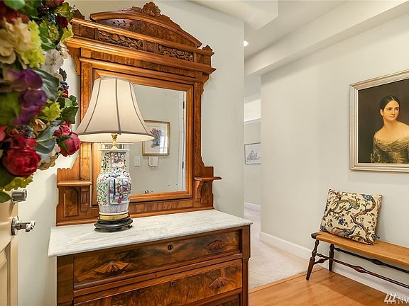 Beautifully appointed home in the Montesano.Rarely available. Corner unit with 2bd/2ba featuring Lake Wa,Cascade Mountains, Mt Baker, City views. Spacious & open living/dining/kitchen area. Large kitchen w/raised bar, gas stove, & stainless appliances. Gas fireplace & deck. Master suite features walk-in closet w/generous closet organizers, master bath w/double vanity, tub/ walk in shower. Large guest bdrm.Storage space, two secure parking spaces.Chandelier goes w/seller. Pet friendly Strong HOA.