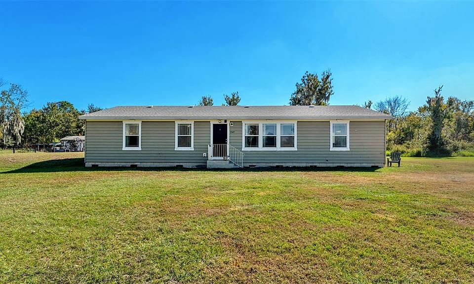 Welcome to peaceful country living on 0.9 acres with plenty of space, privacy, and room to enjoy the outdoors. This beautifully maintained 3-bedroom, 2-bathroom home offers 1,800 sq. ft. of comfortable living space and is the perfect blend of open land and modern convenience. Inside, you’ll find a large, open kitchen featuring abundant cabinetry, updated appliances, a center prep island, and generous counter space—ideal for cooking, hosting, or gathering with family. The kitchen opens to a spacious living area with great natural light, neutral finishes, and plenty of room for oversized furniture. The split-bedroom layout provides privacy for the primary suite while keeping secondary bedrooms conveniently positioned for family or guests. Both bathrooms are well-appointed, and the home offers excellent storage throughout. Step outside to your private slice of Florida country. The property includes a huge yard, outbuildings, and wide-open space perfect for animals, hobbies, gardening, or adding future improvements. With mature trees surrounding the lot, you’ll enjoy peaceful views, quiet mornings, and stunning sunsets. Whether you're looking for land, space, or a move-in-ready home away from the busyness, this property checks all the boxes. Bring your toys, your animals, and your lifestyle—this one is ready for you.