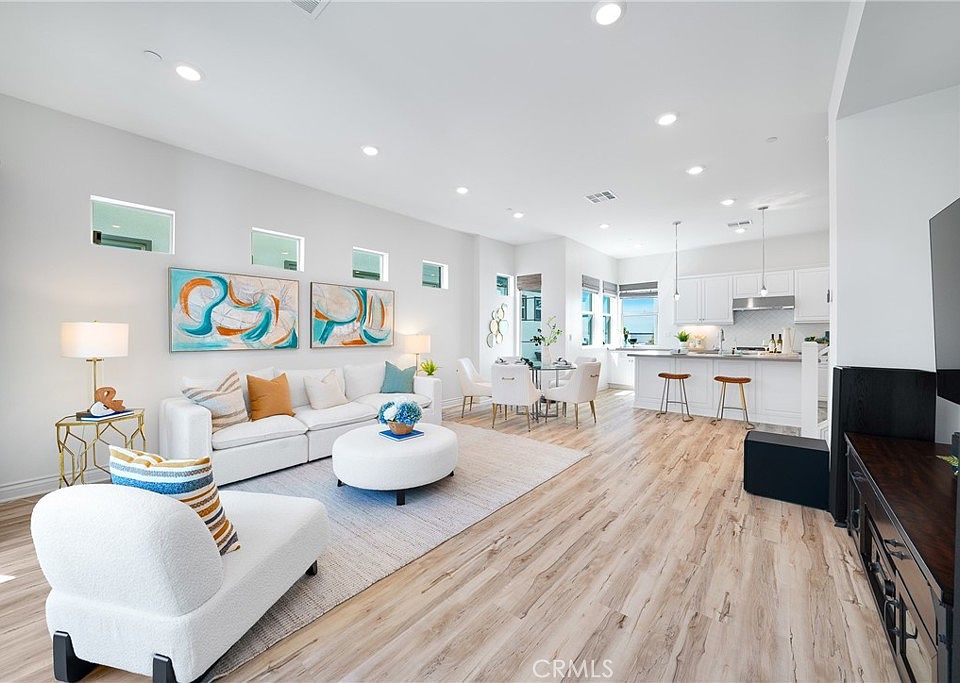Practically a single-family home with only garage wall attached. Step into the epitome of modern living with this impeccable home boasting 3 bedrooms and 3.5 bathrooms, conveniently located within walking distance to Cadence Park K-8. With an attached 2 car garage providing secure parking, this residence offers both comfort and convenience. Enjoy the luxury of plush carpeting and upgraded LVP flooring throughout, creating a seamless blend of style and functionality. Step outside onto your private balcony to soak in the serene surroundings. The chef-inspired kitchen features stylish backsplash and state-of-the-art stainless-steel appliances. The spacious Great Room provides a comfortable retreat for relaxation and entertainment. Garage with epoxy flooring and an enclosed extra storage space. Water softener system for the whole house. Indulge in the opulence of Great Park's unparalleled amenities: five parks, full-court basketball courts, junior Olympic pools, soothing spas, inviting clubhouses, BBQ areas, and charming playgrounds. Nestled within the esteemed Irvine Unified School District, with zoning for Portola High School and Cadence Park K-8. Just moments away from upscale dining options at the Woodbury Shopping Center and cultural attractions such as the Five Points Amphitheater and Irvine Spectrum. Conveniently positioned near John Wayne Airport, Kaiser Permanente, and major thoroughfares (I-5, 241, 133, & 73). Don't miss the opportunity to call this stunning property yours!
