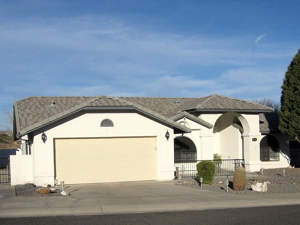 This custom home is better than new! Beautiful landscaping w/a grand entryway to home w/ glass block accents. (Ring doorbell) Homes features *Vaulted ceilings and pot shelves*Formal dining area off kitchen*Laundry to garage entry *Stainless steel appliances(high end)*Convection microwave*Corian countertops*Two bar counters on each side of kitchen for entertaining friends*Corian island is in garage. *Large grand living area that features high end carpeting and french door to a covered patio.Patio set stays*Plantation shutters on all windows*Master bedroom is furnished just bring the mattress.*Master bath features a jacuzzi tub and walk-in shower. Beautiful countertop and bidet w/heated seat and Linen closet*Closet w/cabinets built in.*Split bedrooms w/office already set up for you just bring your own computer.*Guest bath w/shower combo gently used.*RV Parking on west side of home*Shed w/shelving and electric*Garage features custom cabinetry, shelving, grey interlocking flooring, utility sink, climate controlled air and a huge hidden safe. Backyard has concrete and rock landscape with block wall that allows views of the high tree tops and sky, very private for entertaining.*security system*Timed sprinkler system. ETC.ETC.ETC THIS HOME IS A MUST SEE! MOVE IN READY! EASY TO SHOW!** AGENTS CALL OR TEXT ME FOR ALARM CODE**