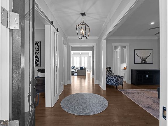 Stunning Modern Farmhouse by Peachland Homes This beautifully designed modern farmhouse blends timeless charm with contemporary elegance. Step through the inviting foyer into an open and airy layout featuring a spacious formal dining room and a private study - perfect for a home office or library. The gourmet chef's kitchen is the heart of the home, offering custom cabinetry, high-end stainless steel appliances, a large center island with seating, quartz countertops, and a walk-in pantry. The kitchen seamlessly flows into the great room, highlighted by a cozy fireplace and walls of windows that fill the space with natural light. Enjoy indoor-outdoor living on the screened and covered porch, ideal for year-round entertaining. The main floor guest suite, privately located at the rear of the home, provides comfort and convenience for visitors or extended family. Upstairs, the luxurious owner's suite is a true retreat featuring a spa-inspired bathroom with a soaking tub, separate frameless glass shower, dual vanities, and a generous walk-in closet. Three additional large secondary bedrooms with ample closet space and two full bathrooms complete the upper level. The finished basement offers an impressive extension of living space - featuring a custom bar, fitness room, recreation area, and additional bedroom and full bath. Outside, enjoy the expansive backyard, beautifully landscaped and ready for your dream pool or outdoor oasis. Located just minutes from Downtown Crabapple and Milton, this home combines luxury living with convenience. Enjoy being within walking distance to Hembree Park, top-rated schools, and local shops and restaurants. 6 Bedrooms | 5.5 Bathrooms | Finished Basement | 3-Car Garage | Large Level Lot