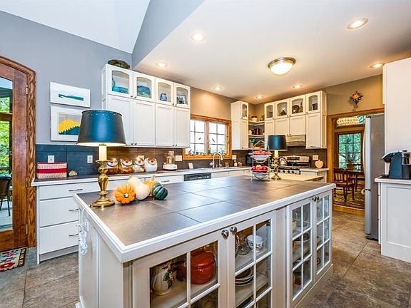 This property is an absolute gem. It sits on 7.23 acres with fruit trees, gardens, a picturesque pond and walking paths through the grounds. The four bedroom home has over 3,000 square feet of space with geo-thermal heating. The elegant custom kitchen, living room with vaulted ceilings, large master suite and screened porch overlooking the gardens, make this a spacious home for family and friends. There is additional space for storage in the pole barn behind the house. The property is in the Lakeshore School District.