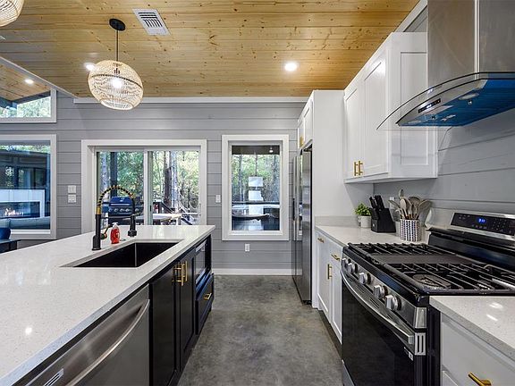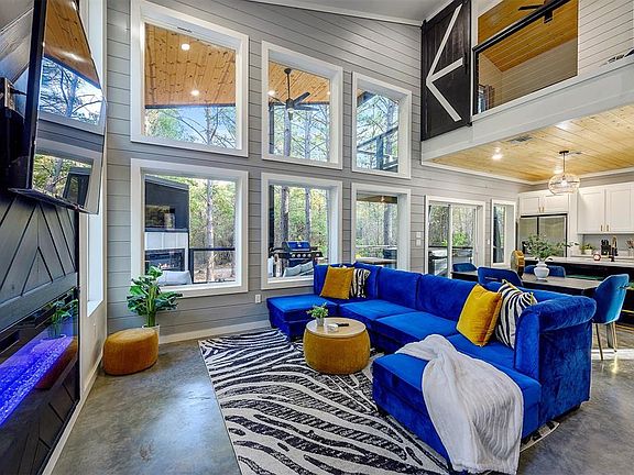 Welcome to Zoey's Haven, a one-of-a-kind luxury fully furnished, turn key custom-built cabin designed for unforgettable experiences and high-end comfort in prime location! This modern retreat blends bright, airy decor, elevated amenities, and playful outdoor features, creating the perfect escape for all. Step inside and be greeted by the wall of windows allowing natural light to flow, an open floor plan and cozy nook under stairs! Featuring one king bedroom on the main level with a beautiful accent wall, fireplace, private serene patio and a spa-inspired en-suite bathroom complete with a double shower, soaking tub, and its own elegant fireplace. Upstairs, you’ll find a second inviting bedroom with private access to the bathroom, plus a unique custom bunk room with sliding barn doors—open them to overlook the living area or close for total privacy. Kids will love their own TVs with LED lighting in each bed. Enjoy your morning coffee on the upper balcony overlooking the peaceful woods. Step outside to the expansive deck where entertainment meets relaxation. Watch TV by the electric fireplace, grill your favorite meals, enjoy a friendly round of mini putt-putt, or unwind in the hot tub with an additional gas fireplace for cozy evenings! Gather around the fire pit under charming string lights to roast s'mores and make lasting memories! Don’t miss the statement selfie wall and the incredible custom treehouse platform featuring a rope climbing bridge, swings, tic-tac-toe board, and LED color-changing lights—a dream space for both kids and adults. This property blends modern luxury with playful adventure—the perfect retreat for relaxation, entertainment, and unforgettable moments. Premium corner lot offering more privacy, space, and accessibility, circle drive, and EV car charger on site. Just minutes from Broken Bow Lake, Beavers Bend State Park, Choctaw Landing Casino, hiking, wineries, dining and all Hochatown has to offer!