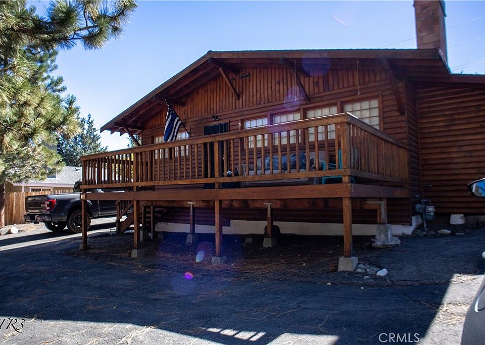 Start living your dream in this charming split log cabin home, just 10 minutes from Mt. High Ski Resort. This 2-bedroom, 1 bath home is the perfect Mountain getaway, with plenty of parking including RV parking and a 2-car garage. The home has beautiful laminate flooring with a fireplace and central heat to keep you warm. The covered back deck is really something to see, with a cement covered back yard, a shed, and a handful of fruit trees. Make this turnkey home yours today!!