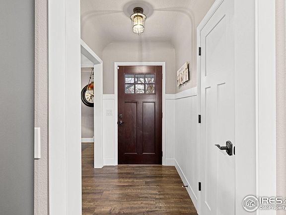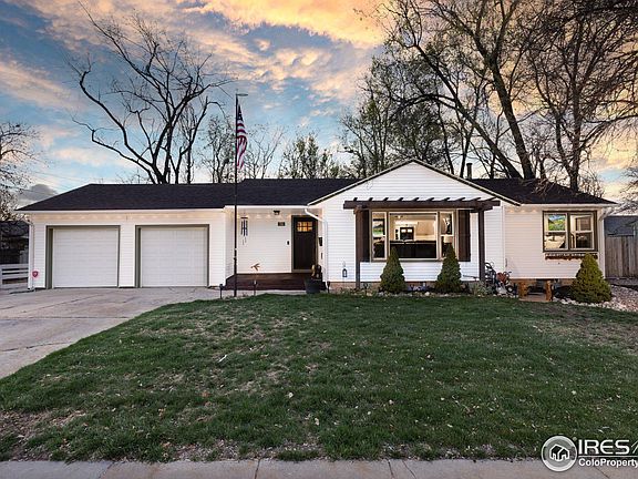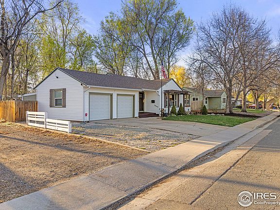 Located in the heart of Loveland, this classic home has been thoughtfully updated and offers a carefree, relaxed lifestyle merely minutes away from the vibrant shops, restaurants, and entertainment of downtown Loveland. Enjoy a neighborhood that provides a nostalgic retreat into tree-lined streets, large lots (think gardening, entertaining, pets & chickens!), and meeting neighbors on front porches. Lovingly cared for and updated by its owner, this 1952 residence preserves the ambiance of its amazing era. Stepping inside from the covered front porch, the entire main level has engineered hardwood floors and features a spacious living room, coved ceilings, and a large east-facing window for sunny mornings. The kitchen is a chef's delight with gorgeous cabinets, pantry, gas range, French door refrigerator, and granite countertops. The dining room has a sliding glass door to a deck perfect for outdoor entertaining. The 2 main level bedrooms have delightful corner windows. Downstairs, a 3rd bedroom, expansive rec room and 3/4 bath offer even more lifestyle options. There is an attached 2 car garage, rare for homes of the day. Outdoors, the fully fenced yard features mature trees, a workshop, storage shed, large deck and a chicken coop/run COMPLETE with chickens!! (NOTE: If you prefer to not adopt the chickens, they can easily be re-homed--your call!) The evening ambience is unparalleled with year-round outdoor Govee lighting. This lot abuts an alley on the south side for even more privacy. Live life on your terms with no HOA or metro district. This sweetheart home sweeps you back into a gentler day and still provides the Rocky Mountain lifestyle of your dreams.