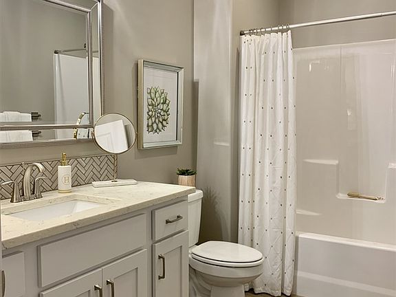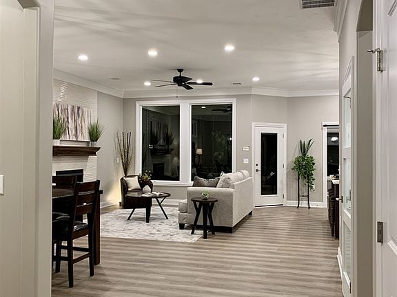 Split bedrooms, tall ceilings, open living/dining and kitchen area are just the beginning of this Windsor plan built by H&H Homebuilders. The entry way is wide and has a convenient coat closet. The front bedroom has a walk in closet which also serves as the safe room. Barn doors lead into the office/den area with abundant natural light. The kitchen features soft close cabinets, gas cooktop, large quartz island, fully tiled gas fireplace, and abundant stoage as well as a walk in pantry. The spacious master bedroom leads right into the master bathroom with double vanity, a tower of cabinets for extra storage, a fully tiled walk in shower with bench seat, and a seperate water closet. The master closet is oversized and has 3 tiers of hanging rods and shelves for all seasons of clothing storage. The laundry room is large at 13' x 6' and provides additional storage and hanging rods. And last but not least is the covered and screened in private patio area where you can enjoy nature, sunsets and stagazing. Castlegate is conveniently located close to shopping, restaurants, major highways, the airport, churches and medical facilities. Clubhouse, salt water pool, fishing lake and mowing and snow removal are part of the ammenities at Castlegate.