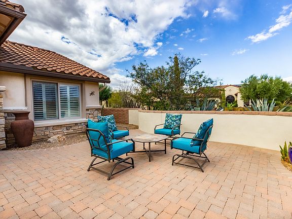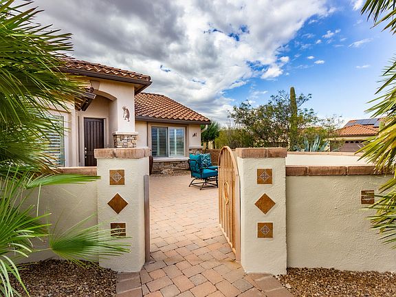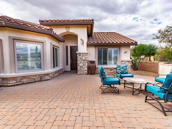 Beautifully furnished, this updated, expanded Laredo is move-in ready. Meticulously maintained, solar-powered on a huge corner lot. Tile and plantation shutters throughout, the split 2-bedroom, 2-bath plan plus den (with Murphy bed) has 2144 sq ft.. Plenty of room for family and friends. Entertain on a large, private backyard with Kiva fireplace and flagstone patio. Lovely walled front courtyard . Custom kitchen with gorgeous cabinets maintenance-free engineered stone counter-tops, and s/s appliances. Four-foot expanded garage with epoxy flooring and Monkey Bars Storage System. New irrigation in 2018. New exterior paint Nov 2020. No expense spared. This is a wonderful property, fully furnished with linens, dishes, pots/pans, art. Just bring your toothbrush, golf clubs and clothes.