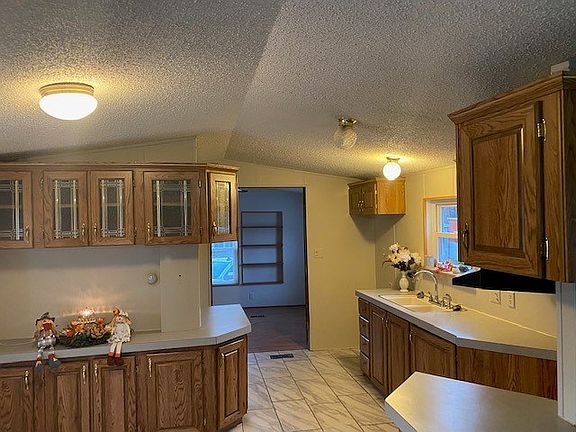 Very well maintained home in the desirable manufactured home community of Pine Terrace. Set up at a two bedroom home the front dining room could be utilized as a third bedrooms. Home offers new flooring, new covered side porch and a new roof. Lovely kitchen with lots of built-ins. Paved parking for two vehicles. Garden shed included for storage.
